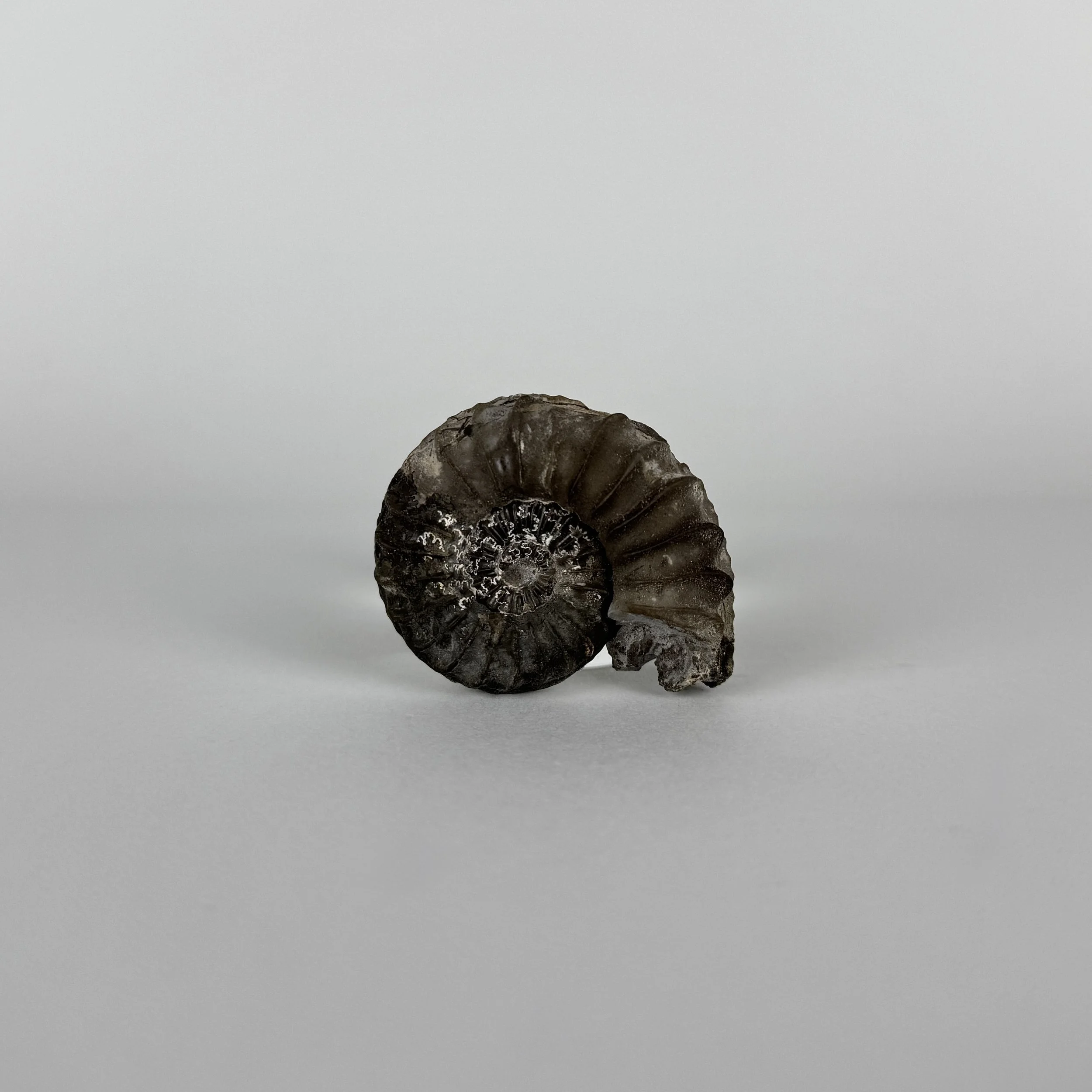 Diese pyritisierten Ammoniten aus Buttenheim bei Bamberg verbinden Erdgeschichte mit handwerklicher Präzision. Behutsam präpariert und teilweise gebürstet, zeigen die rund 180 Millionen Jahre alten Fossilien der Art Pleuroceras spinatum ihre gewachsene Struktur und den metallischen Glanz des Pyrits. Jedes Exemplar ist ein natürliches Unikat.