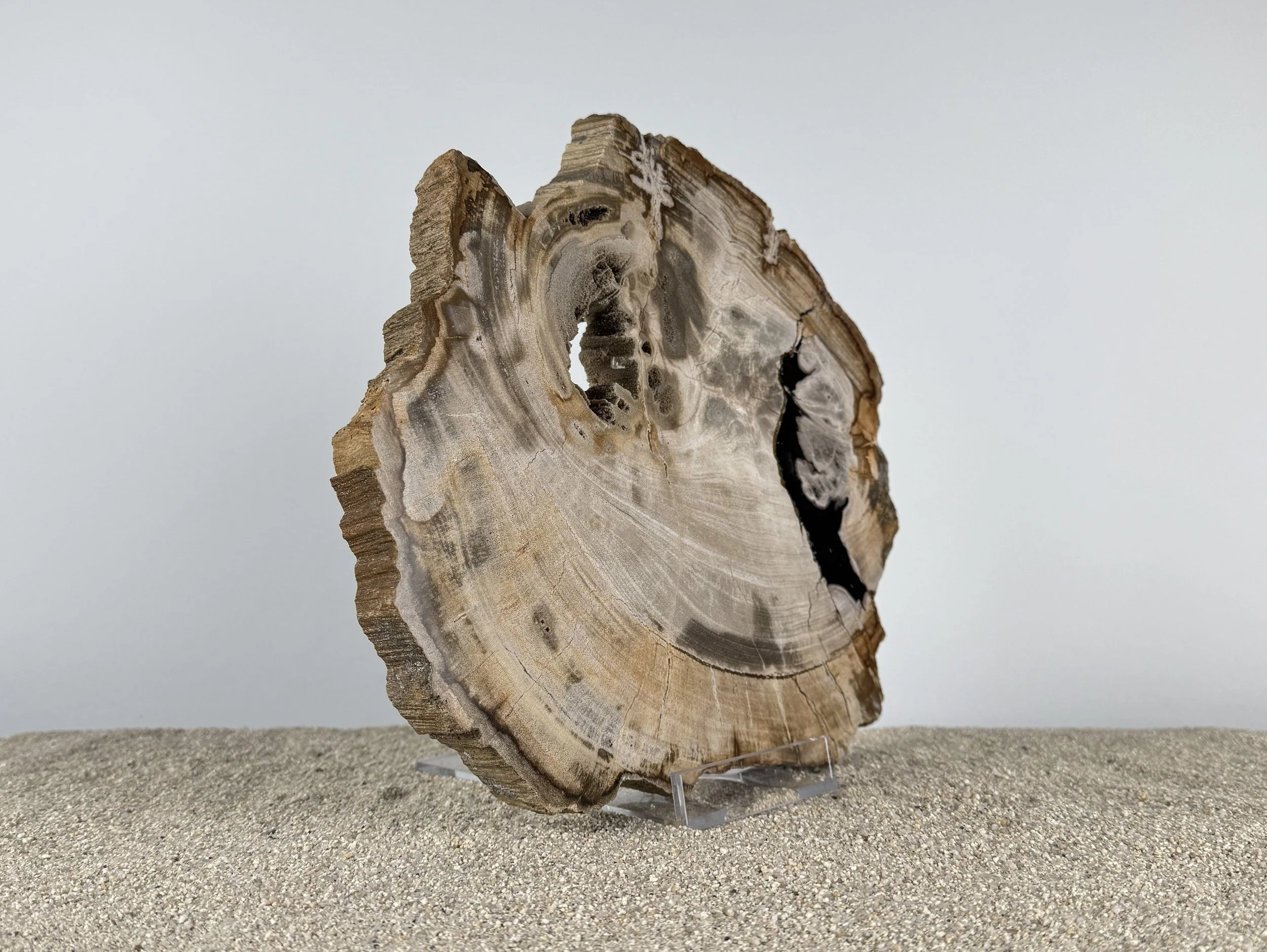 Ob als stilvolles Dekorationselement auf einem Sockel, als Wandbild oder als besonderes Sammlerstück, versteinerte Holzscheiben vereinen Natur, Geschichte und Ästhetik auf unvergleichliche Weise. Jede Scheibe ist ein Unikat und bringt die Schönheit urzeitlicher Wälder in dein Zuhause.