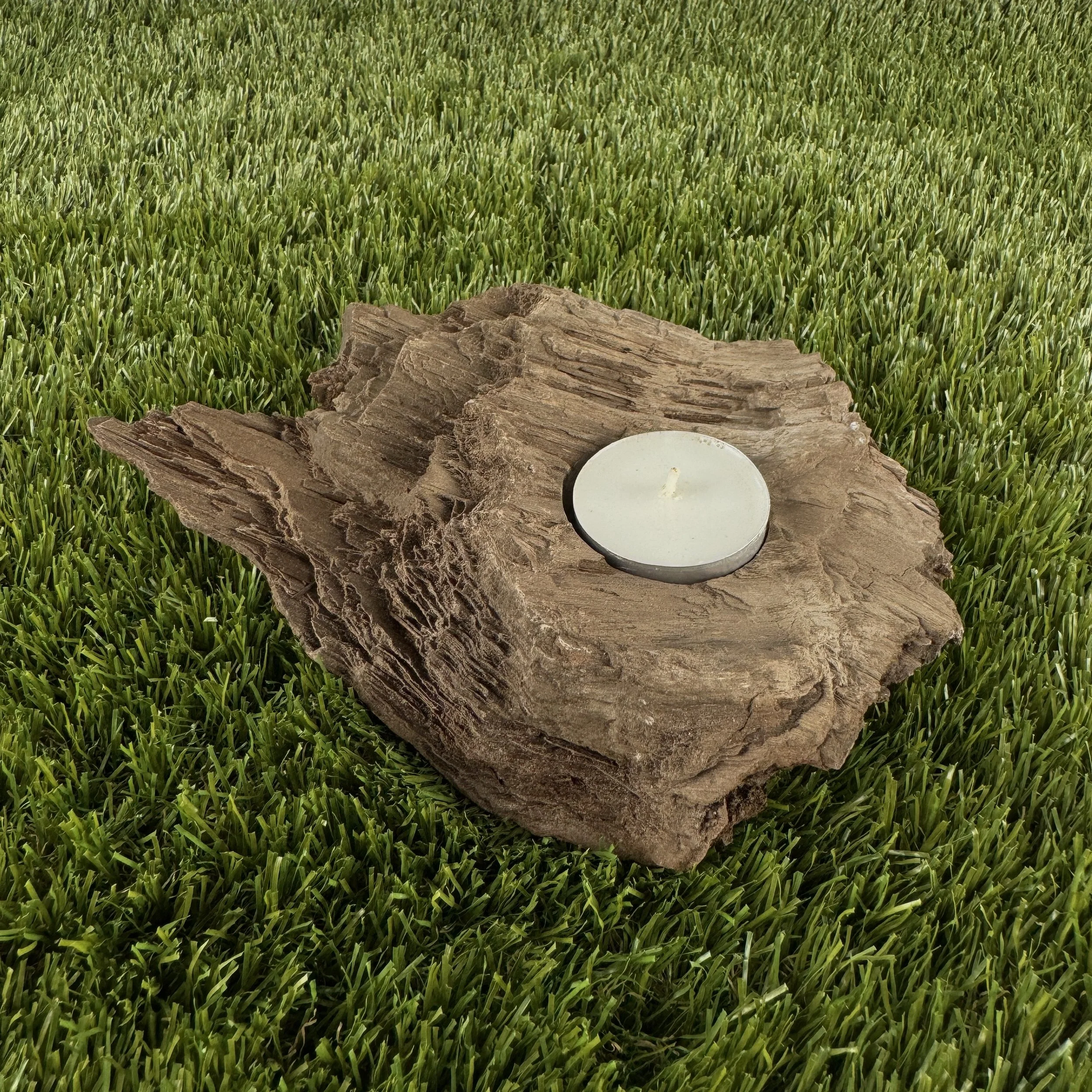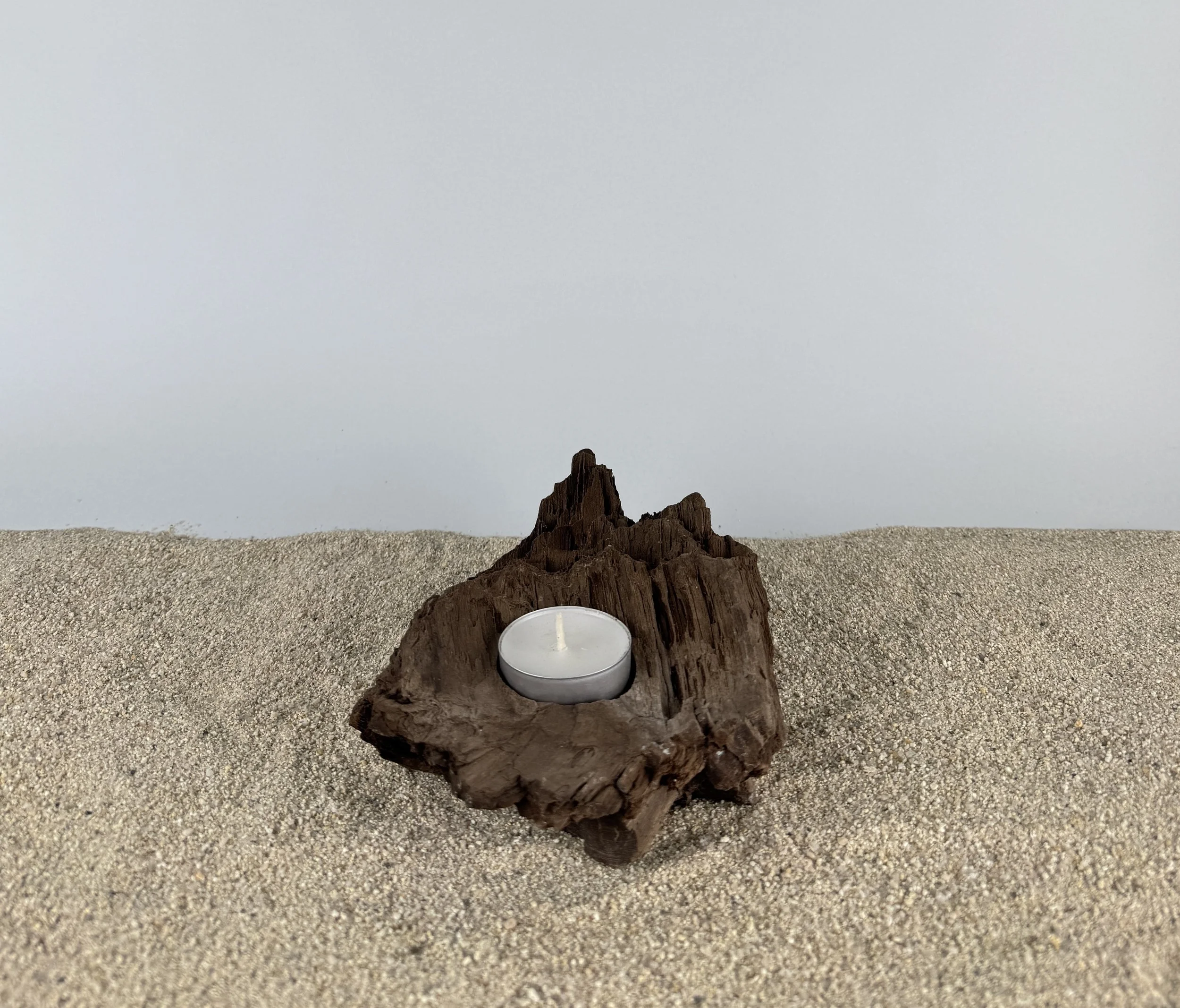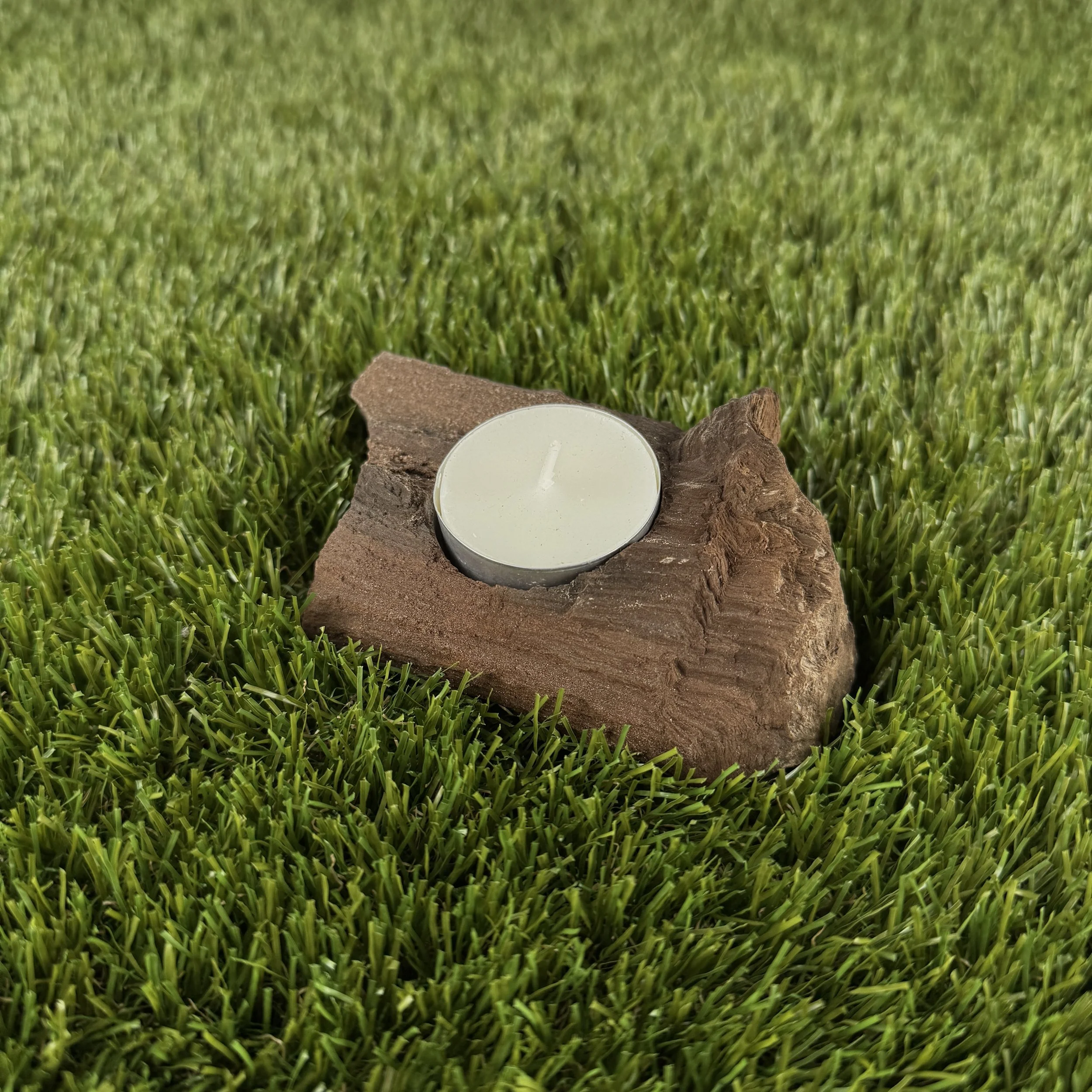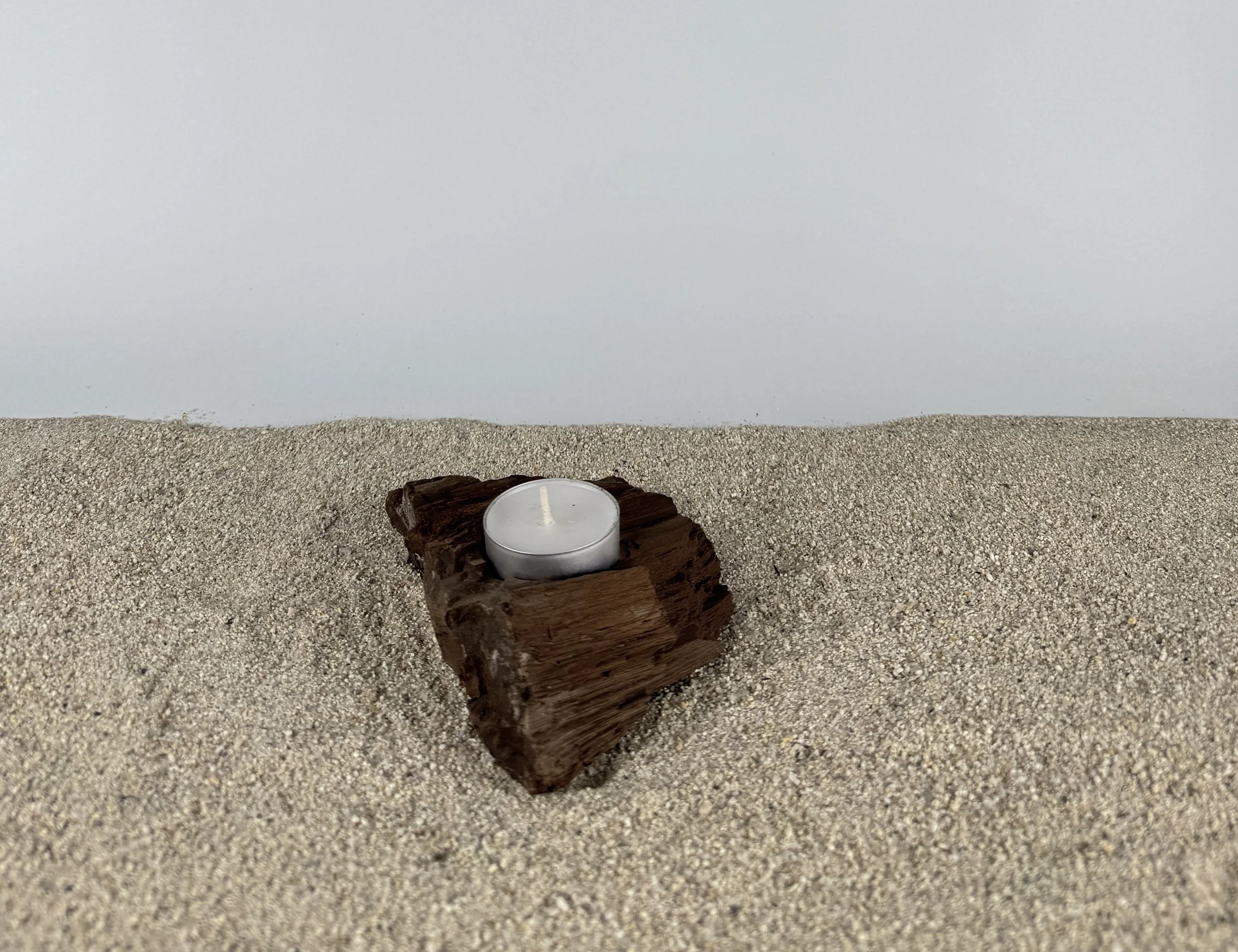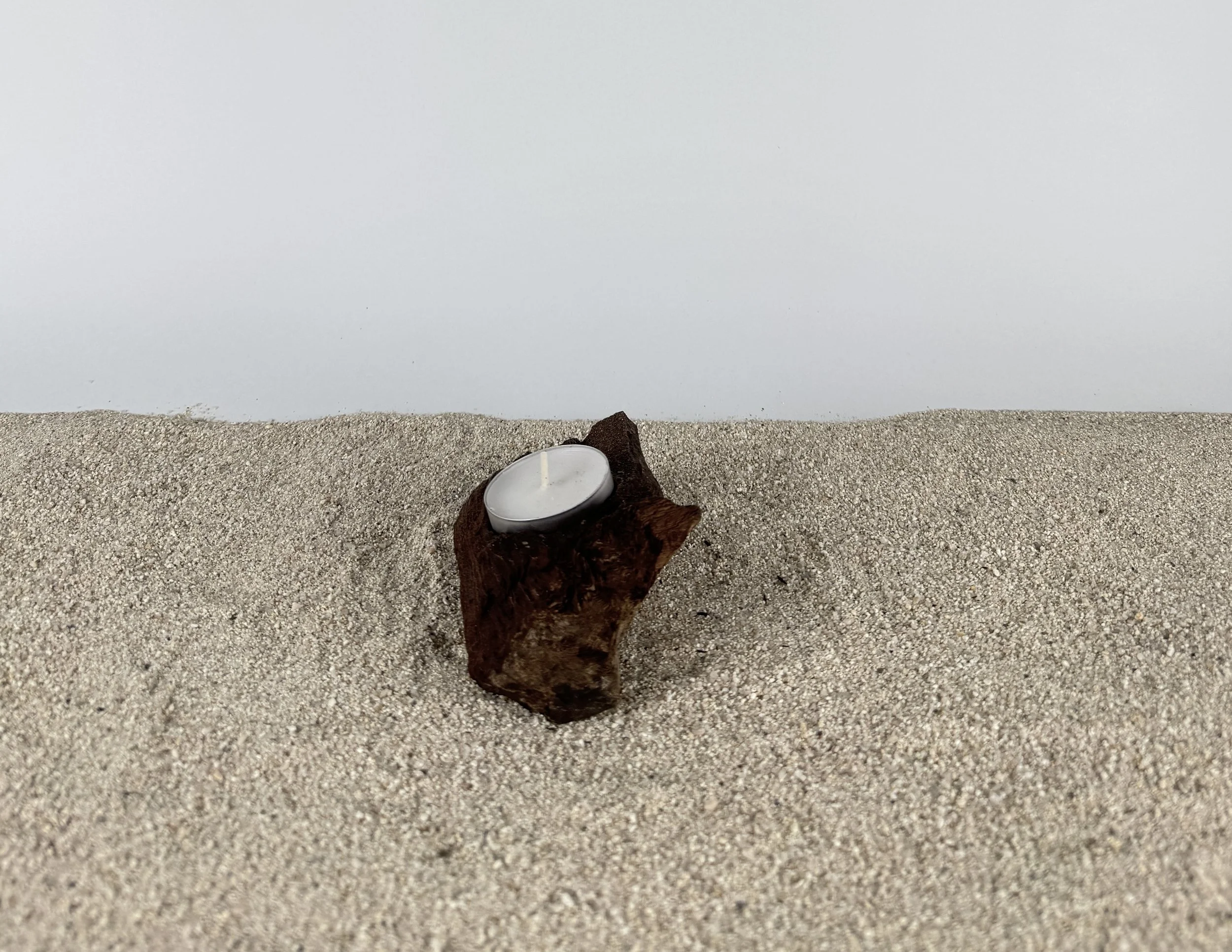 Nicht nur in Indonesien gibt es tolles Holz. Eigenhändig in Deutschland gefunden, geschnitten, gefräst und gesäubert. Auch hier gilt: Jeder Kerzenhalter ist ein Unikat. Ein hochwertiger Dekorationsartikel für jeden Einrichtungsstil, der gerade in der kalten Jahreszeit mit einem dunkelroten oder schwarzen Teelicht für ein angenehm warmes Ambiente sorgt. Durch die vollständige Versteinerung ist das Material absolut unbrennbar - ein echter Pluspunkt in Sachen Sicherheit. Bei Kindern oder Tieren im Haushalt ist dennoch ein LED-Teelicht zu empfehlen.